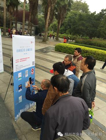 为充分发挥我区公共文化场馆设施在推进市民精神文化生活方面的作用,2016年12月2日上午9:30,我局在鱼峰公园成功举行“阅读推广公益行动——‘扫码看书,百城共读’” 宣传活动启动仪式。本次活动由鱼峰区委宣传部、鱼峰区文化体育和新闻出版局主办,鱼峰区图书馆、鱼峰区文化馆承办,鱼峰公园协办。